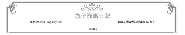 不過在這邊我來跟大家推薦PTT NBA版版主瓶大yushi的Blog,瓶大是死忠的溜馬球迷,他的部落格(瓶子溜馬日記)幽默詼諧的文筆中記錄了他獨到的看法,精闢的見解值得一看再看,正好瓶大正在參加夏日Blog傳說的活動,整個八月連續三十天,每天一篇文章。
